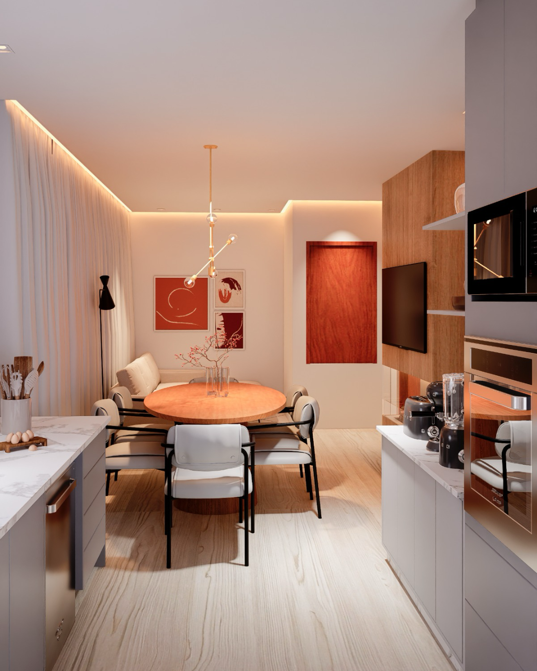 O Projeto 2D é elaborado com base na planta da casa, é apresentado um concept board de localização. Enquanto o Projeto 3D oferece uma perspetiva mais realista, com imagens 3D.